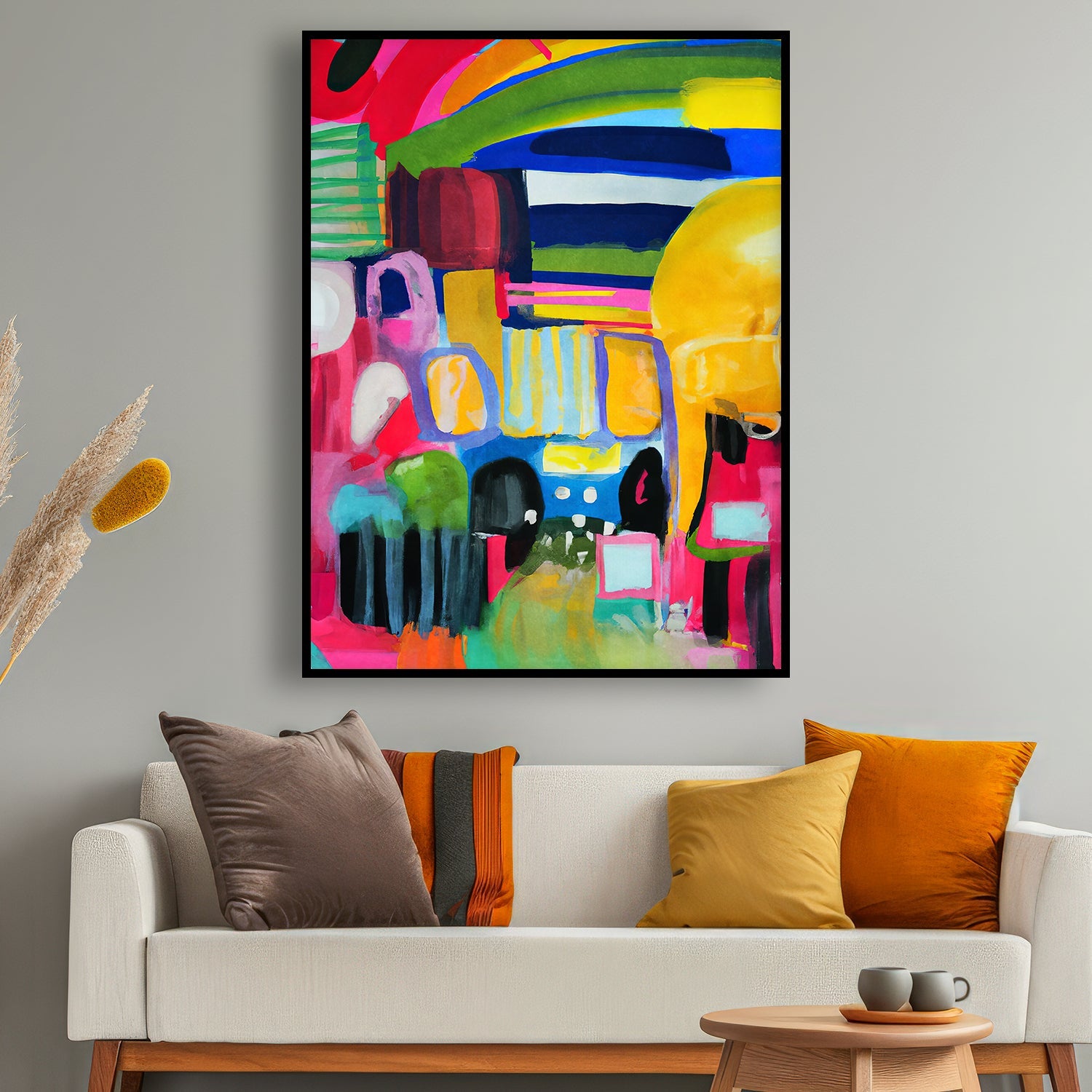 Apportez une touche de fraîcheur et de dynamisme à votre intérieur avec ce tableau abstrait coloré. Ses nuances vives et ses formes modernes créent une atmosphère pleine d'énergie, idéale pour enrichir votre décoration avec un art unique et audacieux.